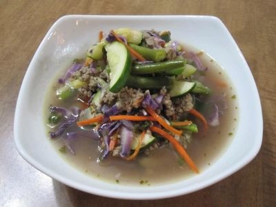 4. Add zucchini, carrot, cabbage, parsley, and broth.