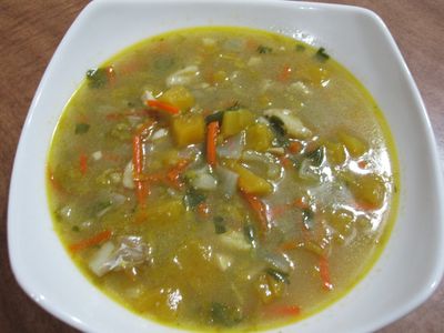 6) Add chicken broth and simmer on low for approximately 30 minutes or until vegetables are tender.