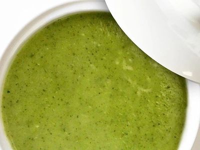 4. Cool to room temperature and then blend in batches to a smooth thick consistency, adding more broth as needed.